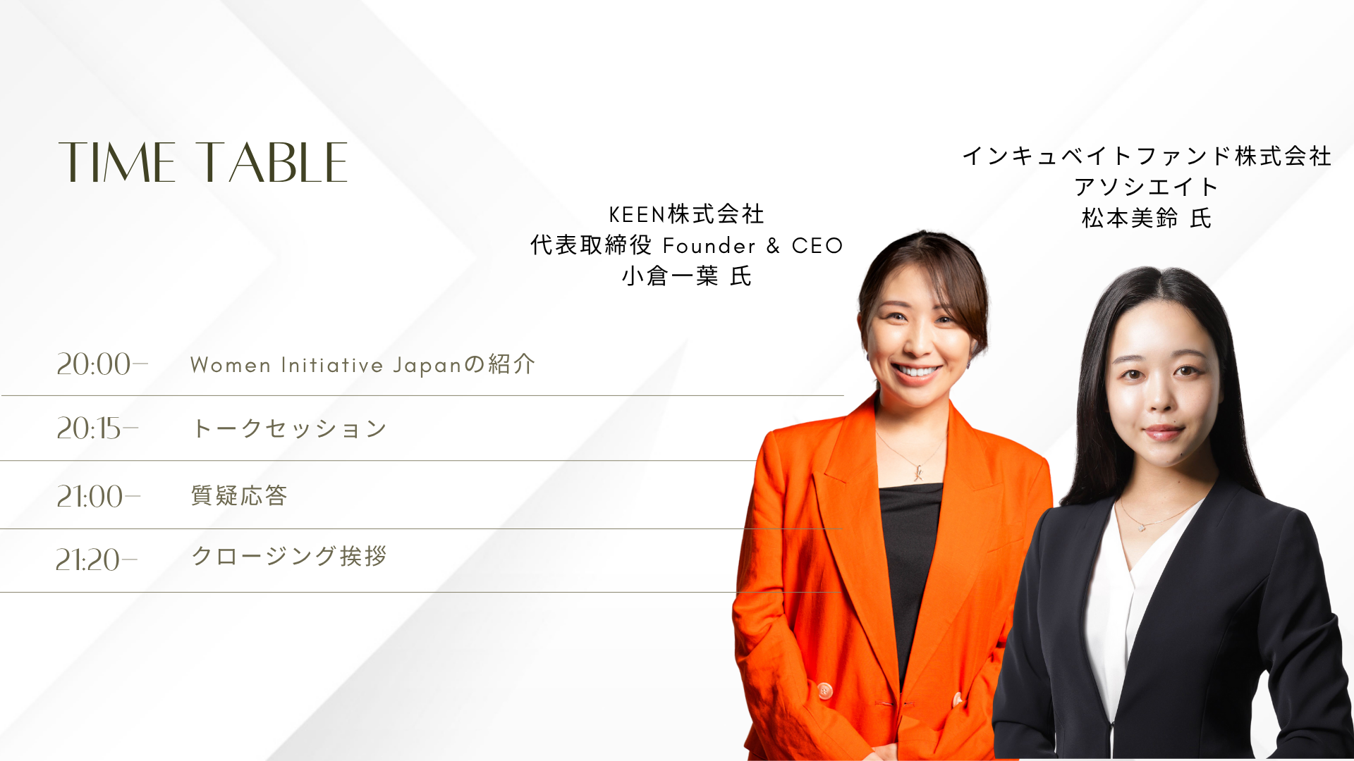 同コミュニティが目指すのは、資金だけでなく、起業家同士や支援者との「質の高いつながり」を通じて、女性の挑戦を後押しすること。投資判断のリアルや、IWCを通じた支援の実例にも触れ、ベンチャーキャピタルの枠を超えた支援スタイルに参加者の関心が集まりました。