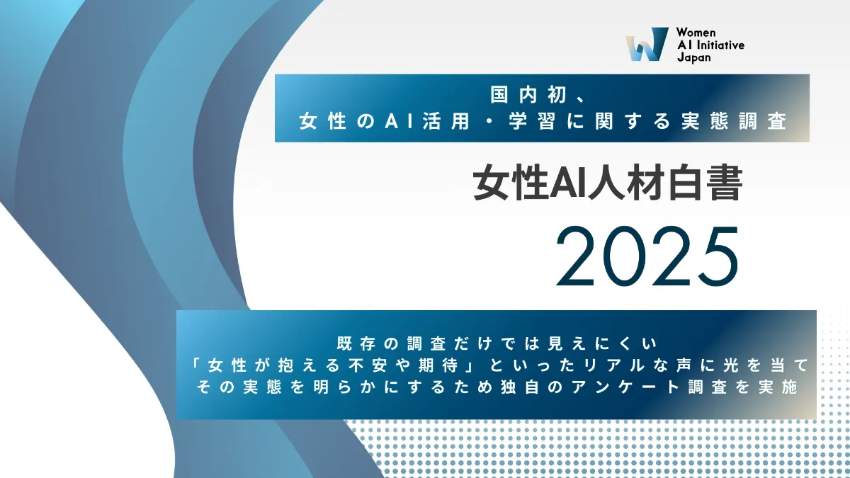 一般社団法人Women AI Initiative Japanは、全国の女性1,116名を対象とした「女性のAI活用・学習に関する実態調査」を実施し、その結果をまとめた国内初(※)の「女性AI人材白書」を発表しました。